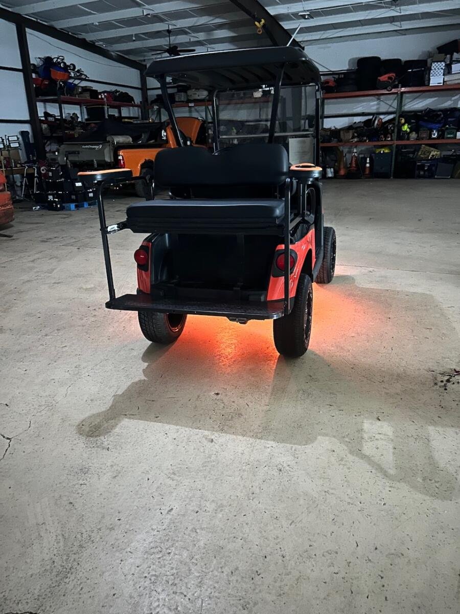 The 2018 RXV EZ-GO is equipped with 14-inch wheels and 23-inch tires, ensuring stability and grip on various terrains. For added safety, the LED highlights feature turn signals, brake lights, and running lights, making your presence known in all conditions. With the Pro Fit flip-back seat, you can transform your cart from a driving machine to a comfortable space for passengers at a moment’s notice. Don’t overlook the underglow kit, which adds an eye-catching flair to your ride, creating a memorable experience wherever you go.